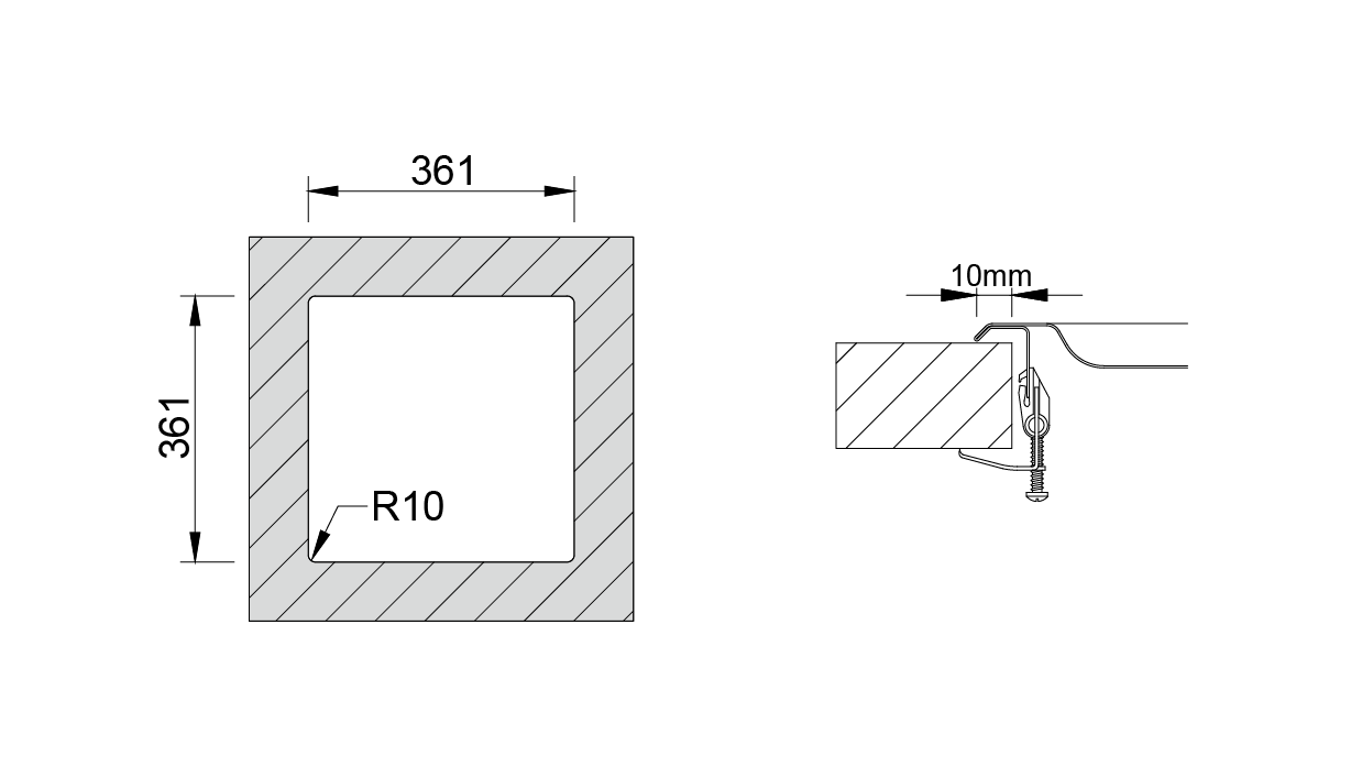 Cuba monoestampada quadrada, para aplicação de encastrar.