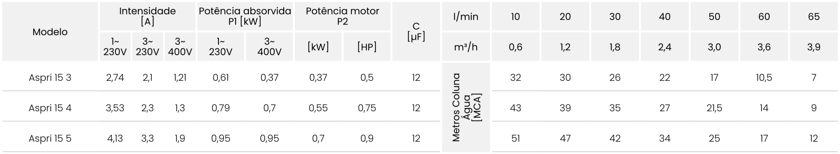 • Características Aspri 15