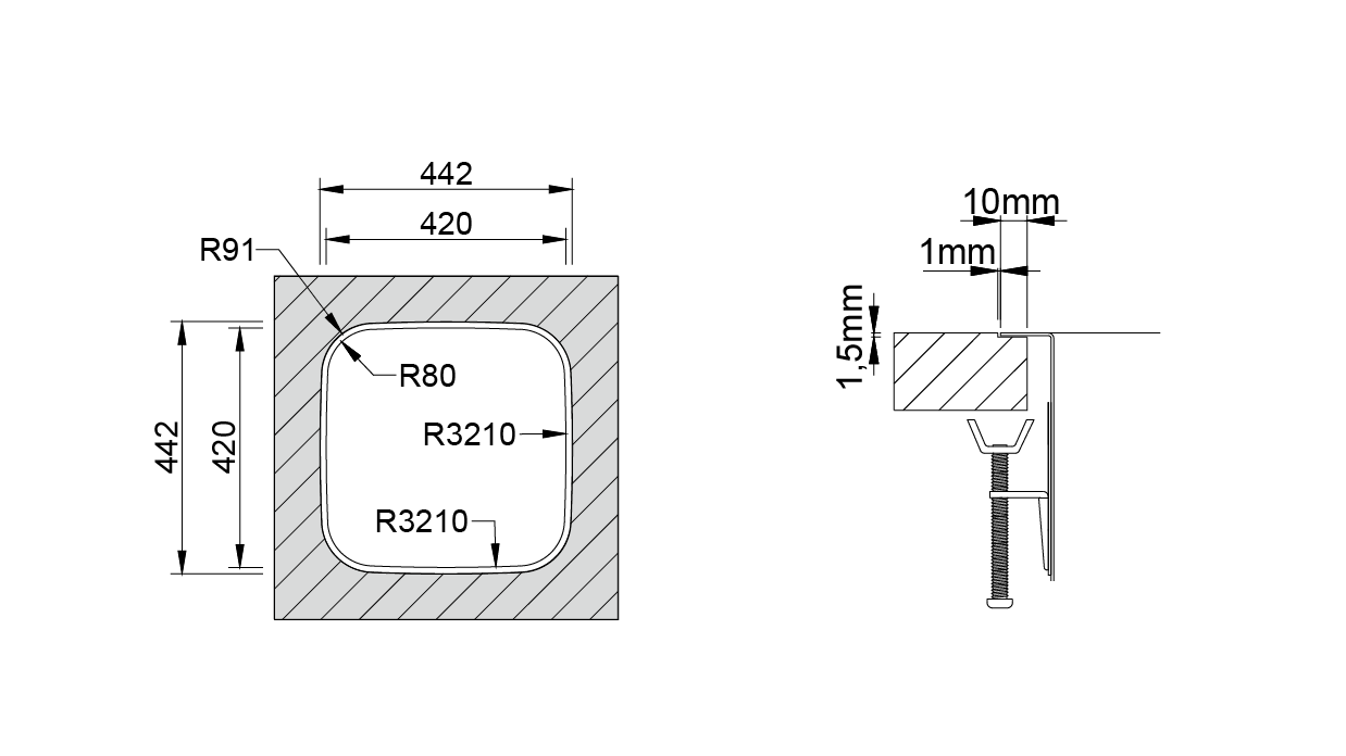 Neste tipo de aplicação, o lava-louça é integrado no balcão, tornando-se numa única superfície.