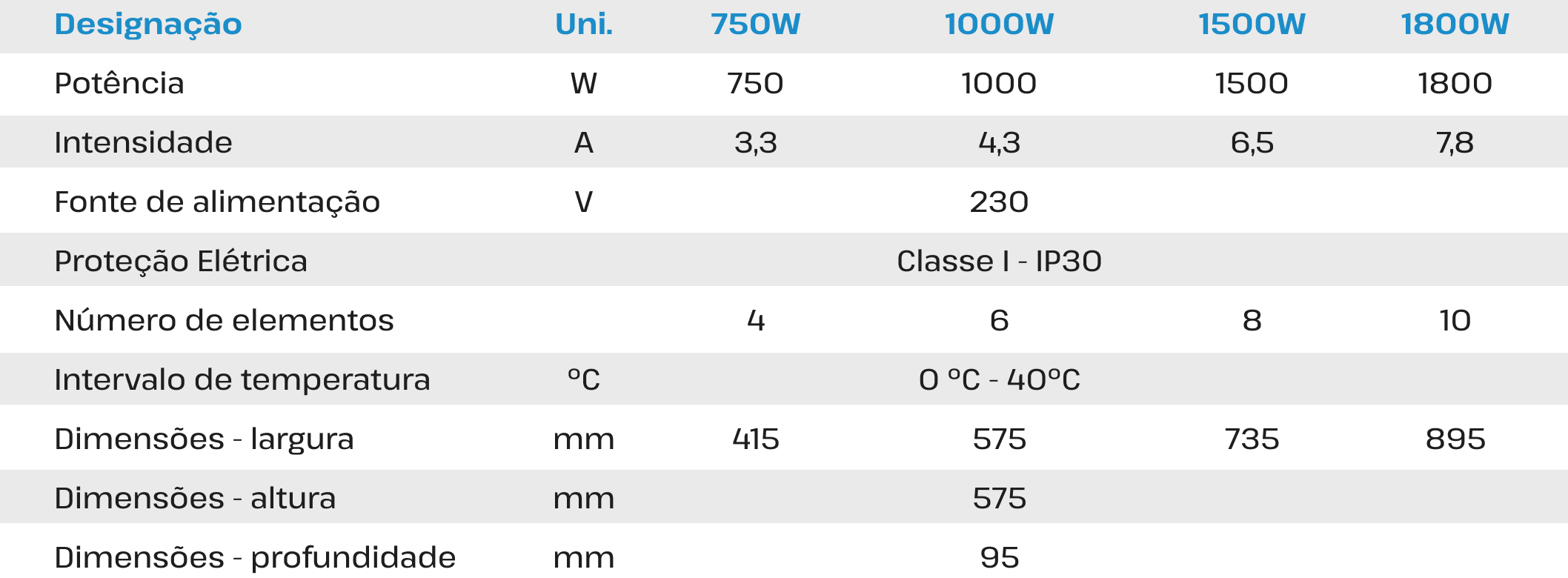 - Potências: 750, 1.000, 1.500 e 1.800 (W)
